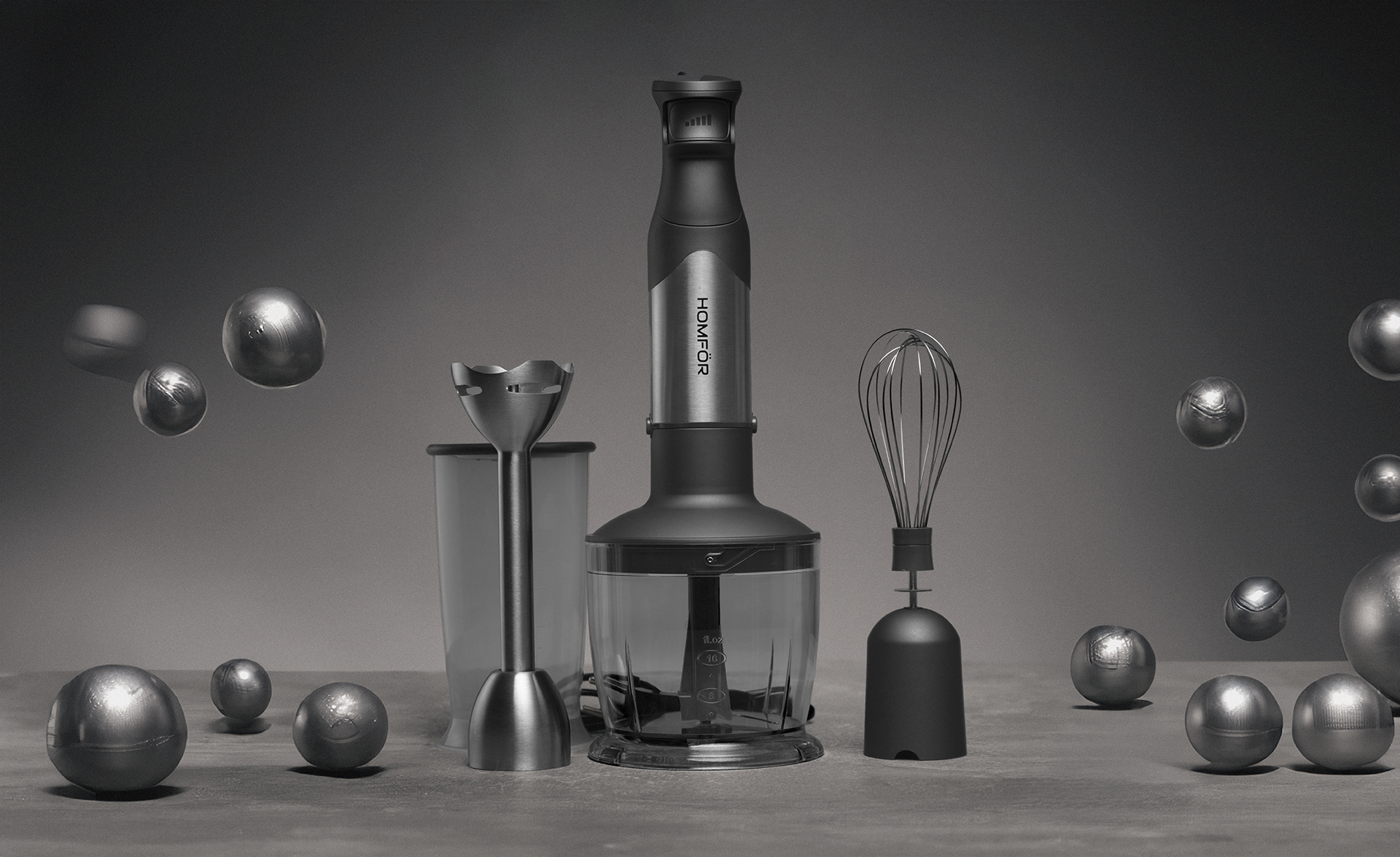 Комплект содержит все необходимое для полноценной работы устройства: блендер, измельчитель, венчик и мерный стакан объемом 500мл