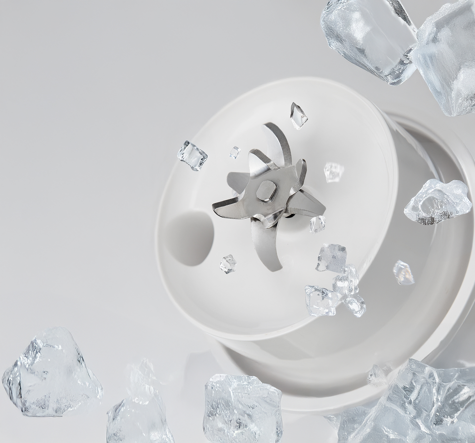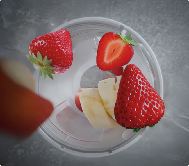 Благодаря мотору непревзойденной мощности в 80 Ватт и системой ножей с десятью острыми лезвиями из нержавеющей стали, HF01 «по зубам» даже такие продукты, как замороженные фрукты, лед, орехи и кофейные зерна.