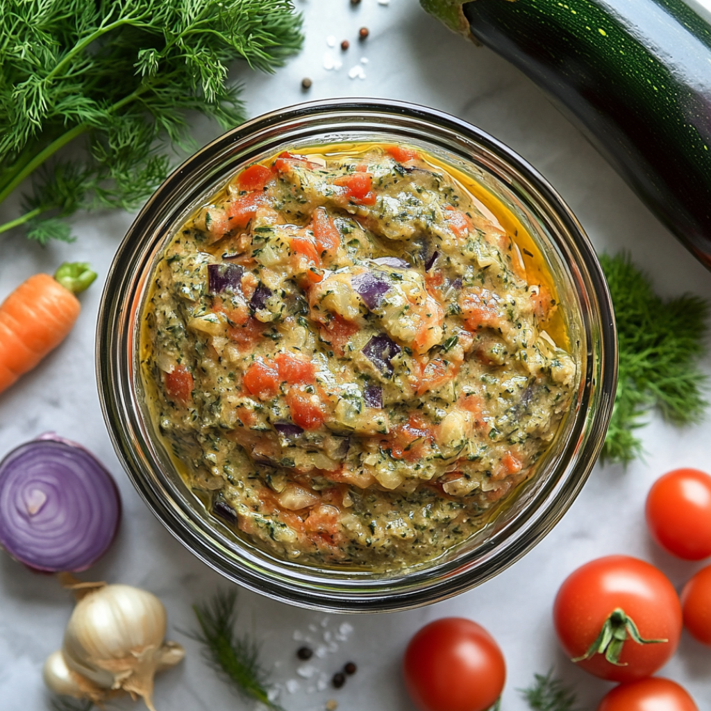 Кабачки 900г; Баклажаны 900г; Помидоры 900г; Растительное масло 100г; Капуста свежая 500г; Лук 300г; Морковь 400г; Соль, перец, лавровый лист по вкусу; Сушёный укроп 1ч.л.;